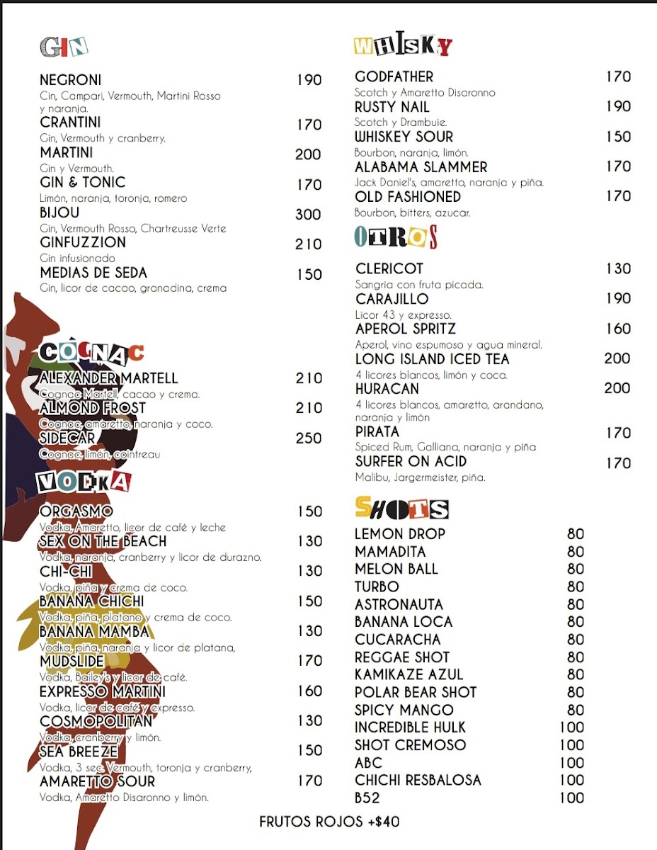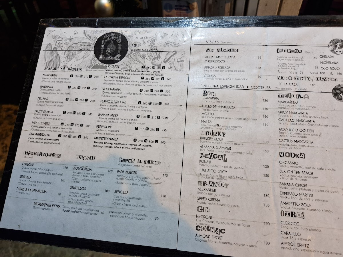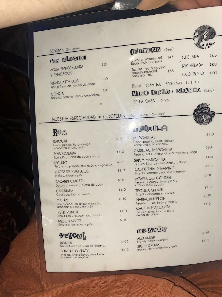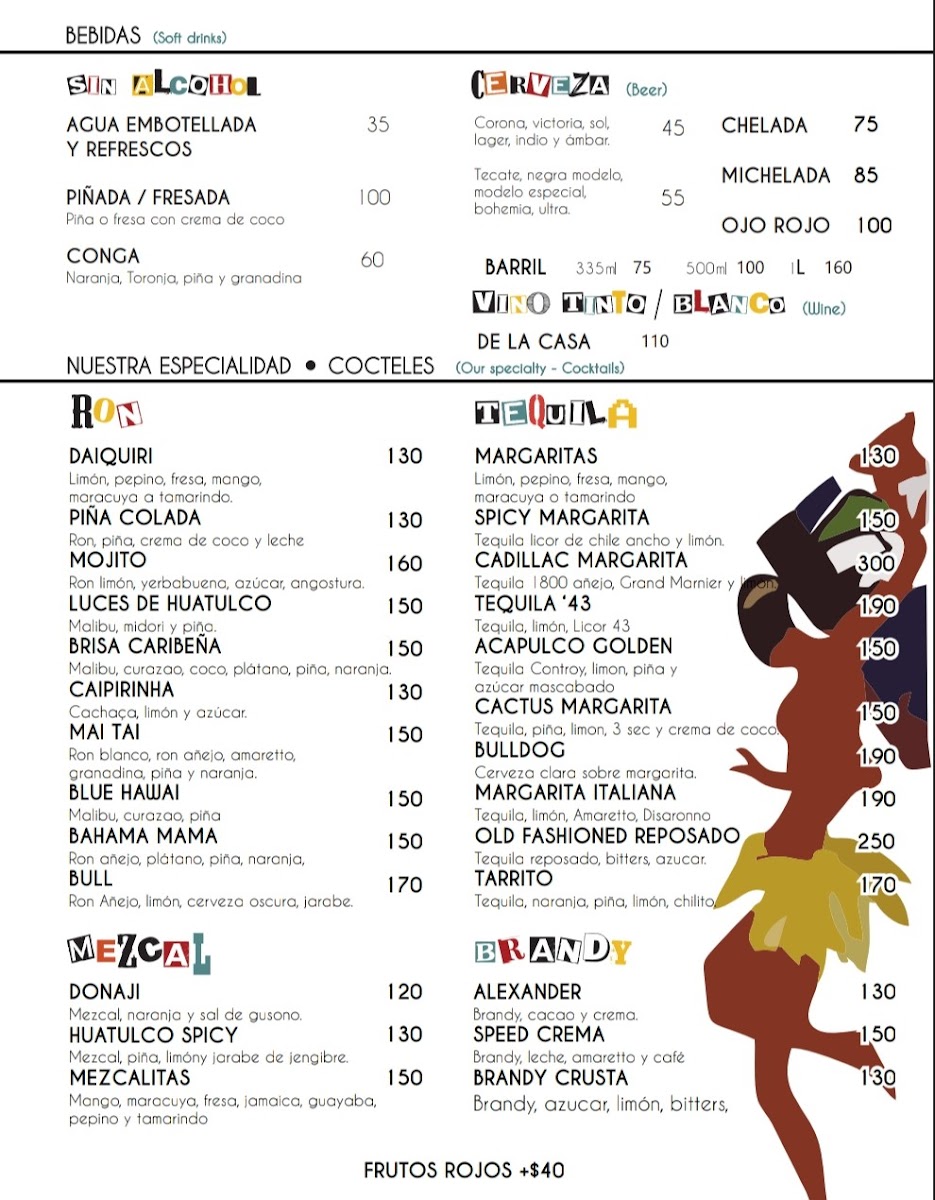 Drink options lean into the playful and refreshing, with choices like the Michelada, Margarita Pepino Limón, and Piña Colada that fit the warm, open-air vibe of the bar. Whether stopping by for a casual lunch or unwinding during a colorful Crucecita evening, the menu aligns well with the laid-back, eclectic atmosphere of the space.