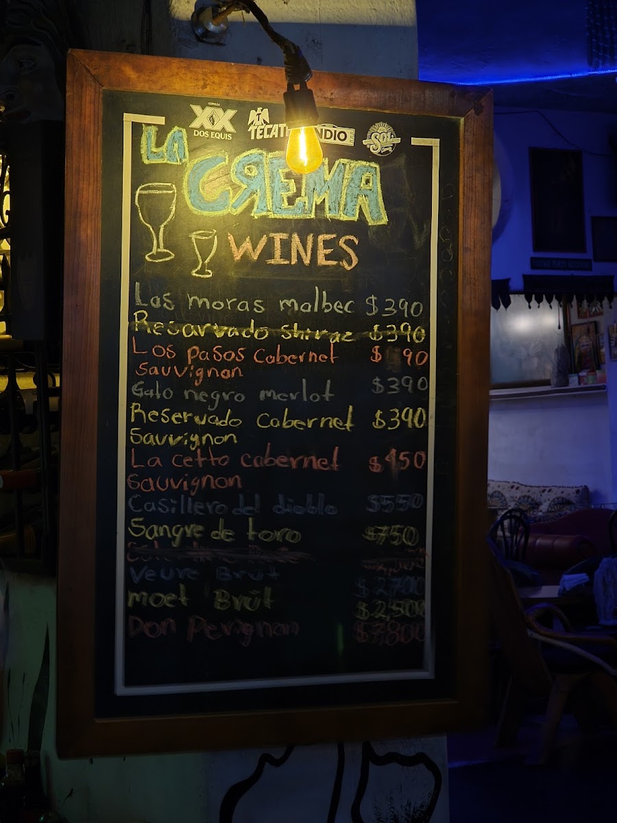 La Crema Bar Menu
